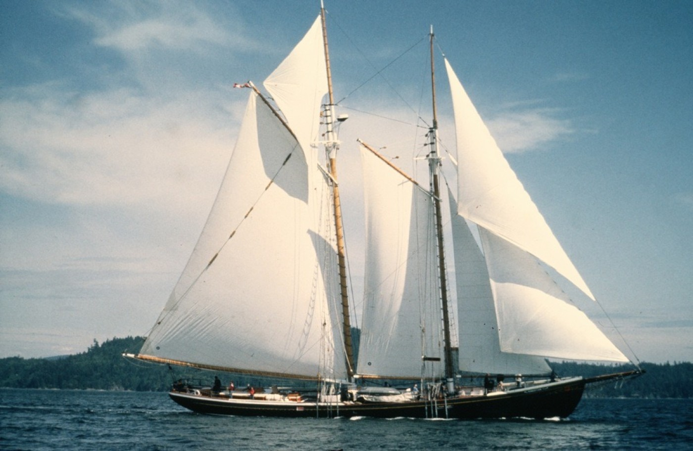 Then he bought the fishing schooner Robertson II in Lockport NS and skippered her through the Panama Canal. He set up and ran the Sail and Life Training Society, SALTS, then a Young Offenders program on the 178 ft. Western Horizon. He also started Adventure Ship for disabled youth in Hong Kong aboard the ship Huan.